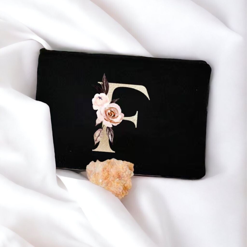 Deze etui is zwart van kleur en voorzien van een bedrukte letter van het alfabet. (Bedrukking is niet door ons aangebracht). Ook is deze etui voorzien van een binnenvoering en afsluitbaar met een rits.