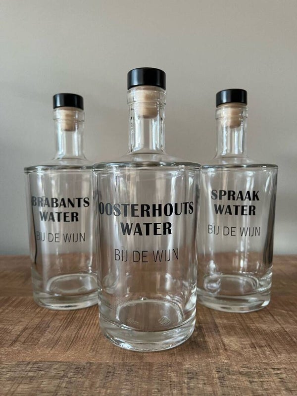 Deze mooie stoere ‘Water bij de wijn’ waterflessen zet je gevuld met water op tafel. Lekker bij het eten, lekker bij een glas wijn.