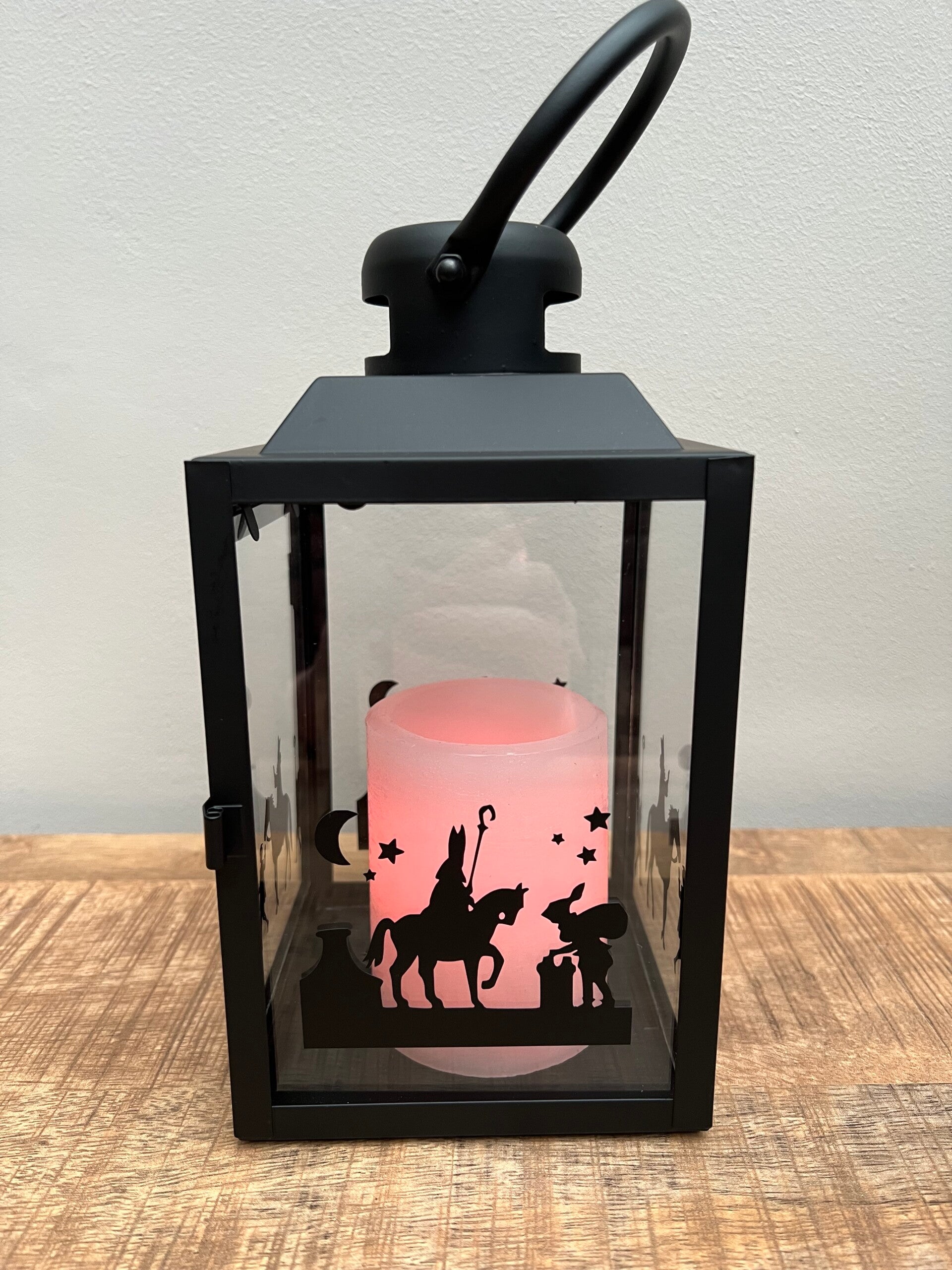 Voor de gezellige avondjes zet je deze leuke metalen lantaarn op tafel. Deze is mooi bedrukt met Sint & Piet afbeeldingen.