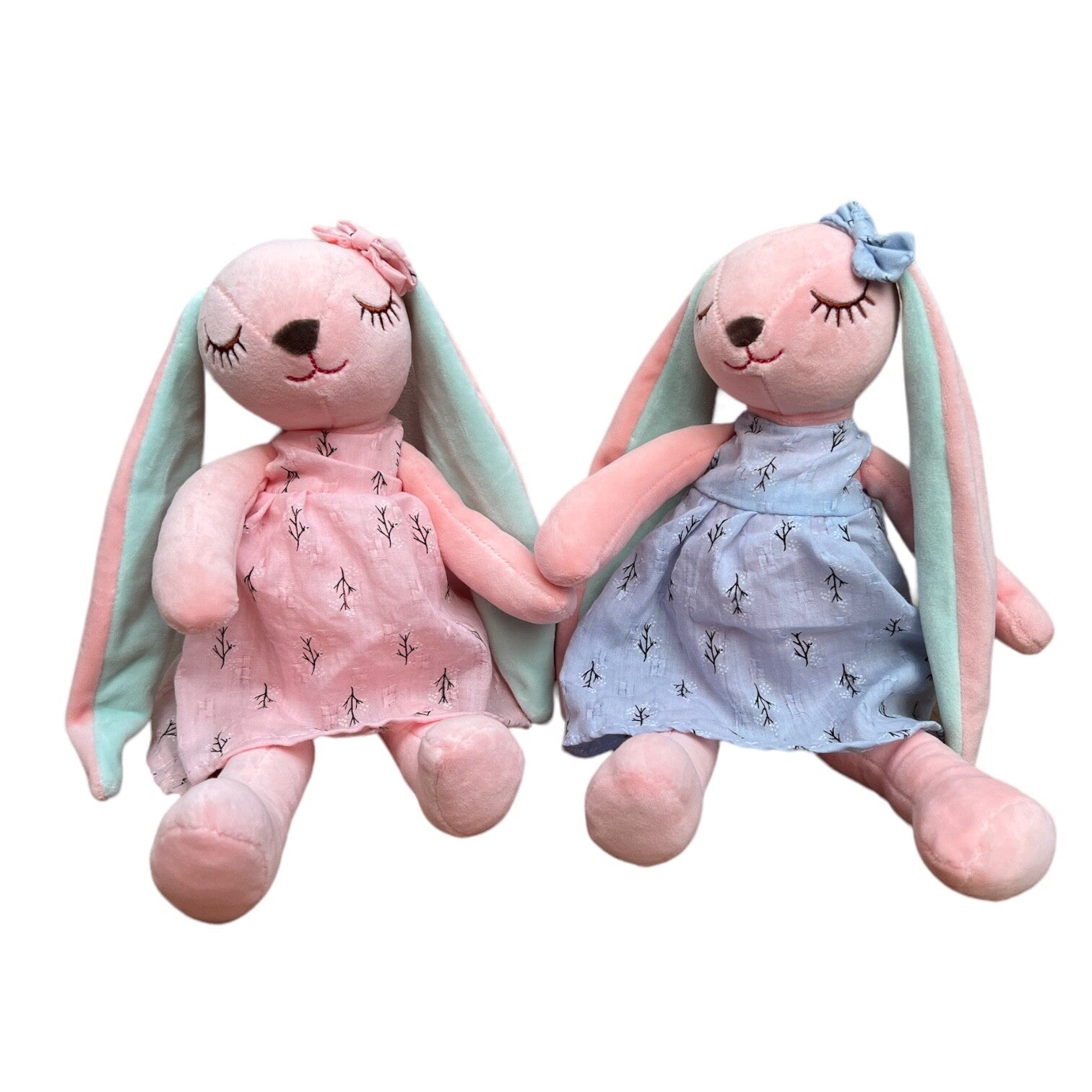 Verkrijgbaar in een roze of blauwe jurk. En indien gewenst kunnen wij de naam van het kind aan de binnenkant van het oor drukken. Zo wordt het ineens een heel persoonlijk kado.