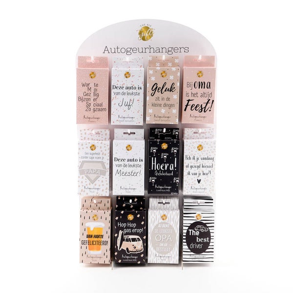 De autogeurhangers zijn er in verschillende designs en verpakt in een super leuk doosje! Elke geurhanger heeft een eigen vorm en elke vorm weer een andere geur met daarbij een handig koord om op te hangen.