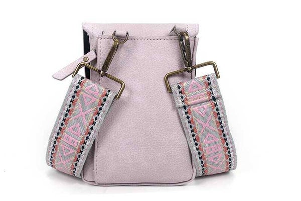 De geweven schouderband / bag strap geeft dit stylische tasje een unieke look. Aan de achterkant van het tasje zit een klein vakje afgesloten met rits. De perfecte manier om kleine kostbaarheden veilig te bewaren.