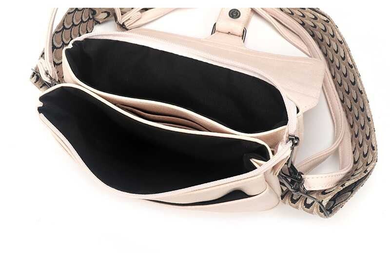 Dit tasje heeft verschillende royale vakken waar je je spullen veilig in op kunt bergen. De body bevat twee grote vakken, beide apart afgesloten met een ritssluiting. Tussen de twee vakjes in, zitten speciale vakjes voor het bewaren van bankpasjes en geld.