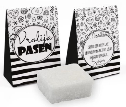 Dit leuke kleine cadeautje is er ook zo één om weg te geven. In dit doosje zit een heerlijk ruikend amberblokje.