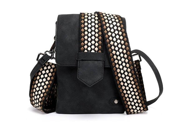 'Nancy’ wordt geleverd met twee schouderbanden; een effen smalle band, en een geweven brede band. Zo kun je zelf kiezen welke band het beste bij je outfit past!