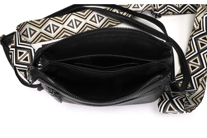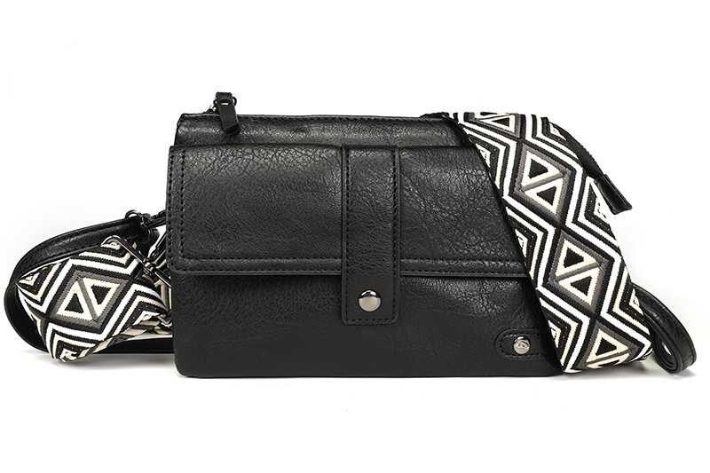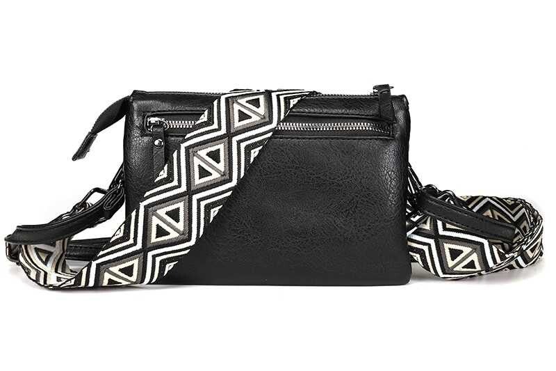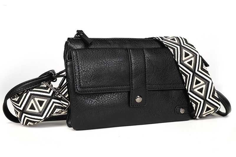 De damestas kan gebruikt worden als schoudertas of crossbody tasje. De Naarden wordt geleverd met twee verstelbare schouderbanden. Een dunne effen variant en een brede geweven schouderband.