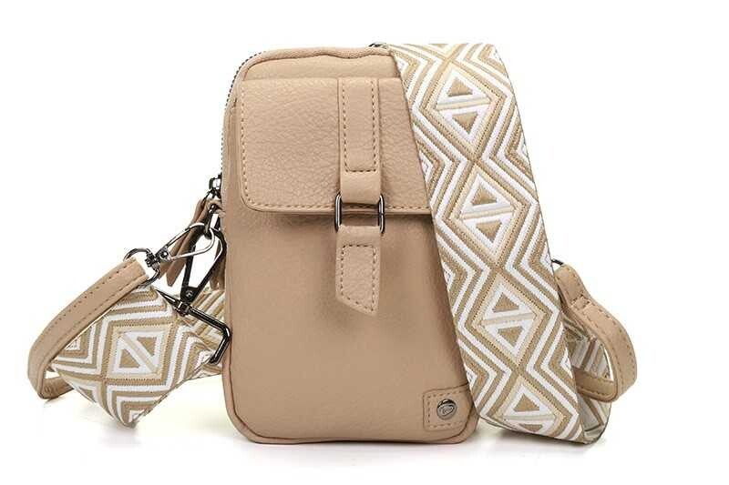 Stoer sportief schouder- telefoontasje Dublin is een nieuwe topper in de collectie! Dit tasje is uitgevoerd in een mooi vegan-leather materiaal en wordt geleverd met twee verschillende verstelbare schouderbanden, ideaal om af te wisselen!