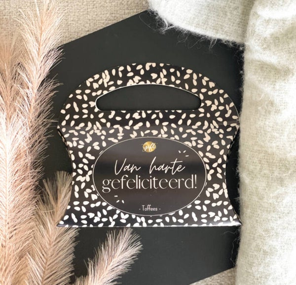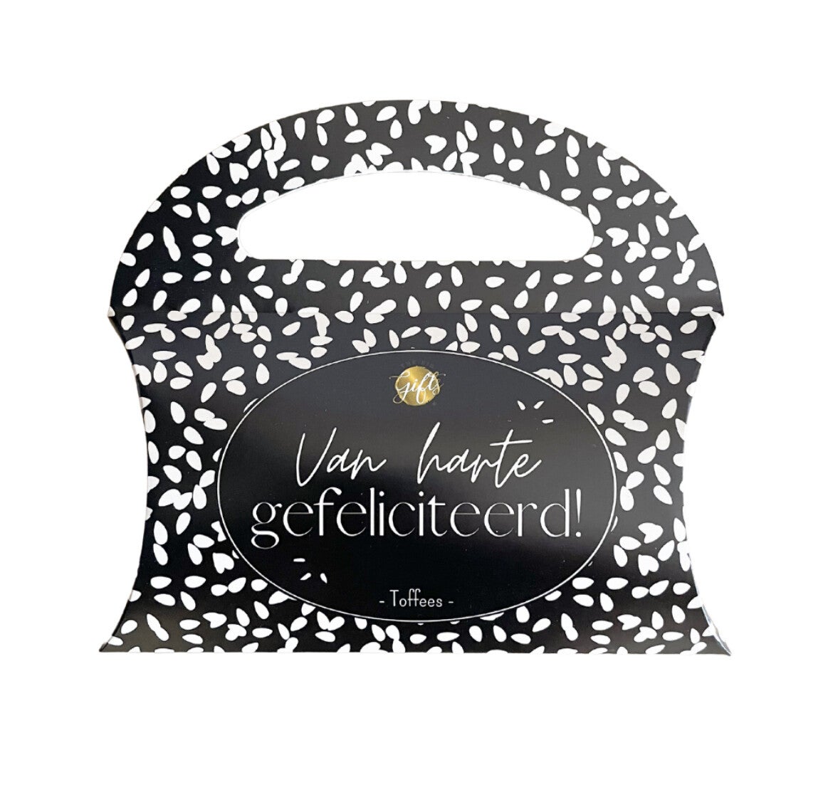 Verras je dierbaren met het unieke Snoep Tasje – Gefeliciteerd. Dit schattige doosje, vormgegeven als een mini tasje met een handige hendel, is het perfecte cadeau om iemand op een zoete manier te laten weten dat je aan ze denkt.