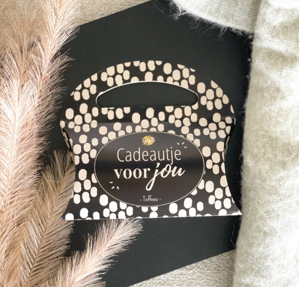 Elk tasje is zorgvuldig gevuld met 10 heerlijke toffees, verpakt in een compact formaat van 17 x 10 x 3,2 cm.