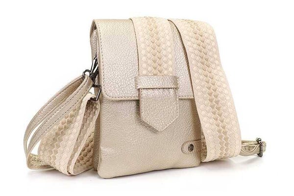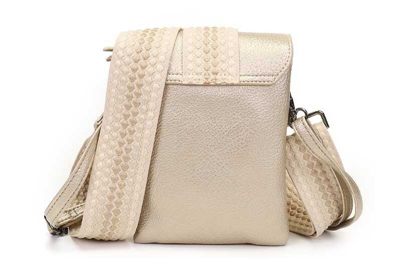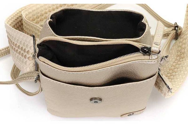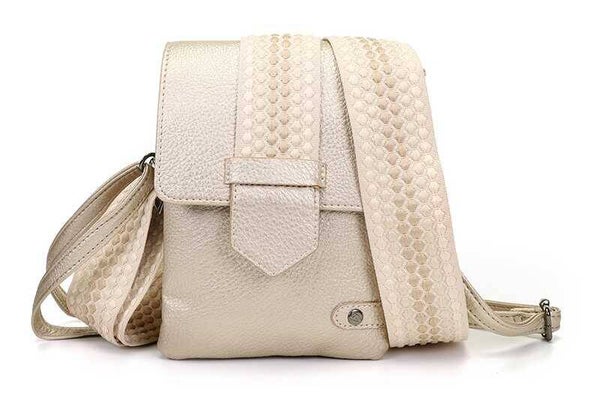 'Nancy’ wordt geleverd met twee schouderbanden; een effen smalle band, en een geweven brede band. Zo kun je zelf kiezen welke band het beste bij je outfit past!