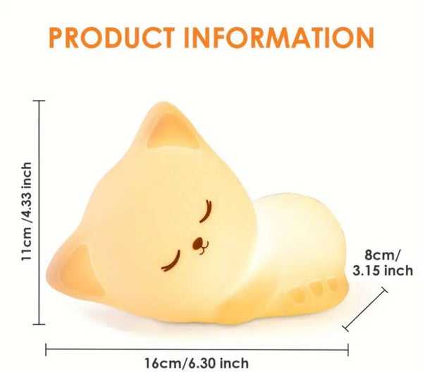 Welkom in de wereld van betoverende dromen en rustgevende nachten met het "liggende poes" nachtlampje. Dit lieve lampje, gemaakt van zacht siliconen, is een perfecte metgezel voor je kleintje en creëert een magische sfeer in de kinderkamer.