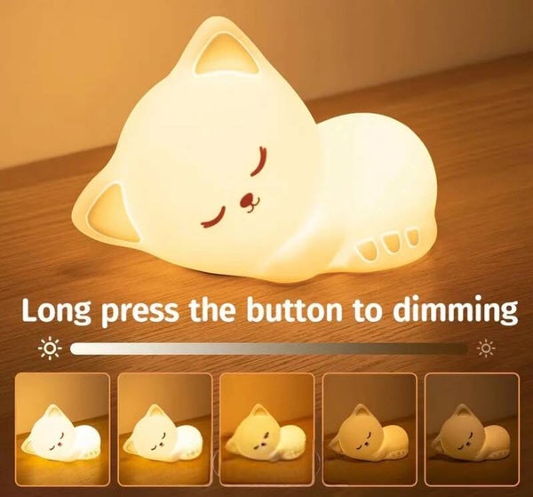 Liggende poes - Zachte LED Babykamer Nachtlampje met Dimbare Verlichting, 30-minuten Timer en afstandsbediening.