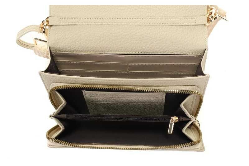 Deze stijlvolle portemonnee / tas biedt bovendien ruimte voor elke telefoon. Je kunt je telefoon kwijt in één van de twee voorvakken onder de flap. Deze flap wordt afgesloten met een druk magneet.