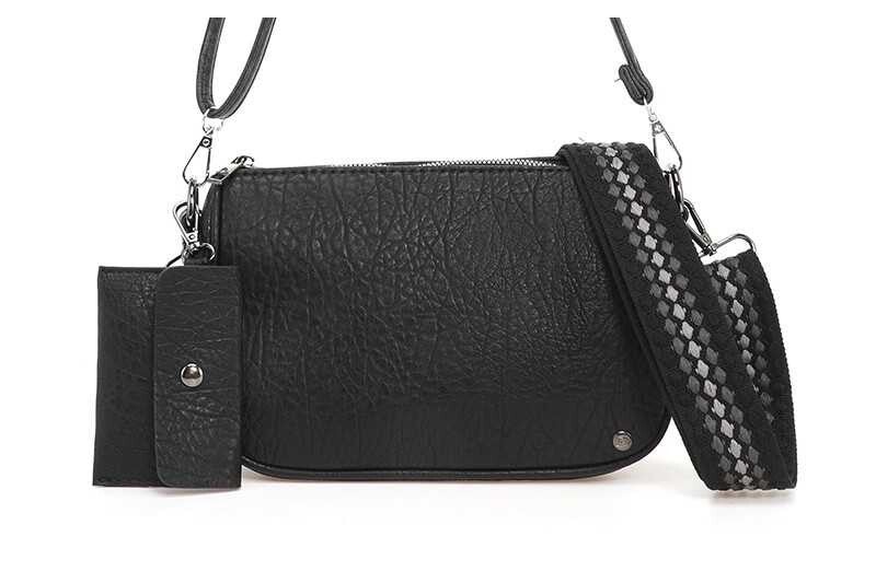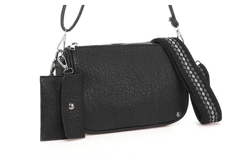 Het hoofdvak sluit met een ritssluiting en biedt binnenin een klein ritsvakje en een handig zijvakje voor kleinere items. Daarnaast wordt de tas geleverd met een bijpassend portemonneetje, ideaal voor muntgeld/pasjes of andere kleine essentials en twee schouderbanden.