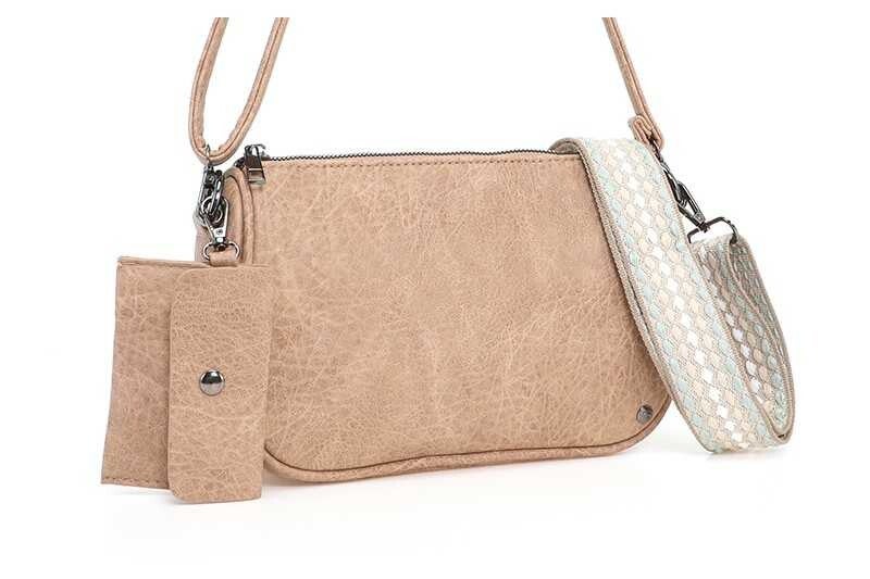 Het hoofdvak sluit met een ritssluiting en biedt binnenin een klein ritsvakje en een handig zijvakje voor kleinere items. Daarnaast wordt de tas geleverd met een bijpassend portemonneetje, ideaal voor muntgeld/pasjes of andere kleine essentials en twee schouderbanden.