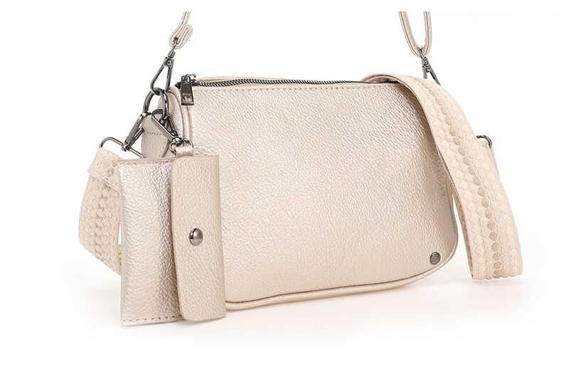 Het hoofdvak sluit met een ritssluiting en biedt binnenin een klein ritsvakje en een handig zijvakje voor kleinere items. Daarnaast wordt de tas geleverd met een bijpassend portemonneetje, ideaal voor muntgeld/pasjes of andere kleine essentials en twee schouderbanden.