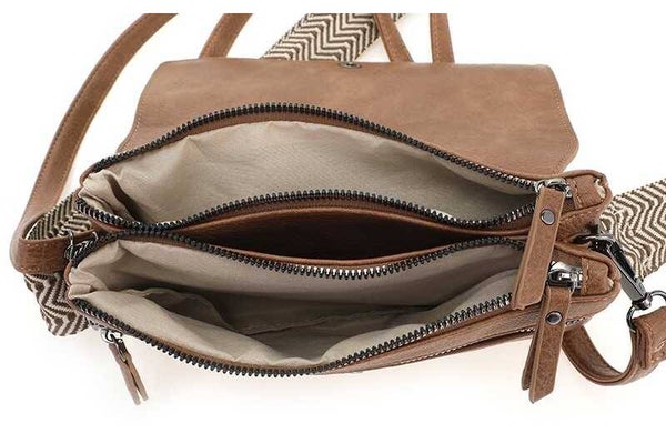 De tas heeft twee ruime vakken die met een rits zijn af te sluiten. De vakken zijn geschikt voor mobiel of andere waardevolle spullen. Aan de voorkant zit nog een extra vakje. Deze is op zichzelf af te sluiten met rits. Perfect voor geld, of kostbare eigendommen! De overkoepelende vlap is voorzien van een magneetsluiting waardoor dit tasje extra veilig vergrendeld is.